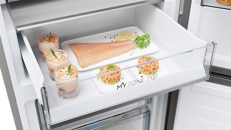 S přihrádkou My Zone vyhovíte i těm nejnáročnějším potravinám. V zásuvce lze samostatně nastavit teplotu od 0 do +5 °C, a vy tak budete mít jistotu, že mají všechny potraviny tu nejlepší péči