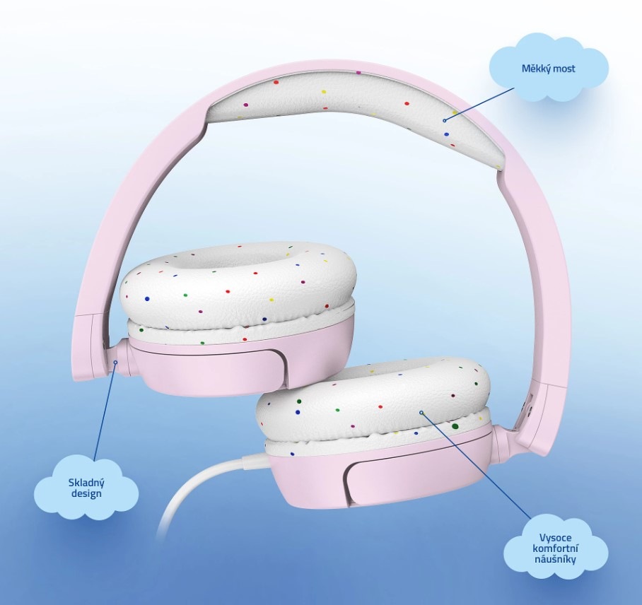 Aby si děti poslech co nejvíce užily, jsou náušníky sluchátek vyrobeny z měkkých a hypoalergenních materiálů. Díky tomu jsou pohodlné i při dlouhém nošení a nebudou dráždit dětskou pokožku. Design sluchátek si lze navíc přizpůsobit pokreslením nebo veselými samolepkami, které jsou součástí balení.