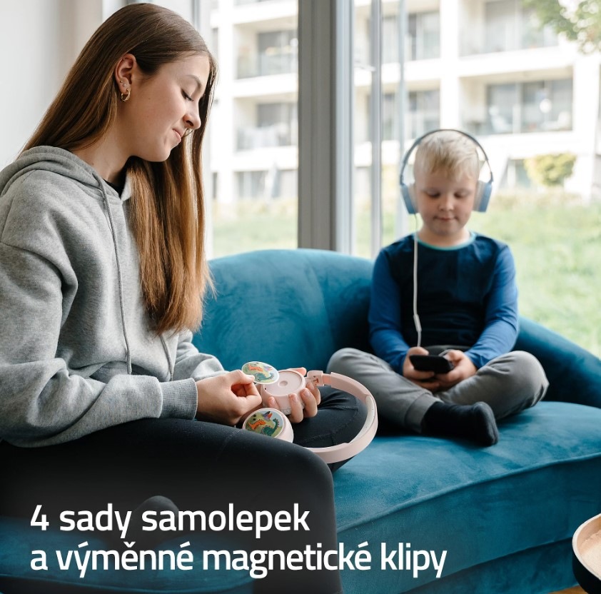 Nechte děti, ať si sluchátka přizpůsobí podle svých představ. Součástí balení jsou bílé klipy, které si děti mohou ozdobit vlastními kresbami nebo samolepkami. V balení najdete také 4 sady samolepek.