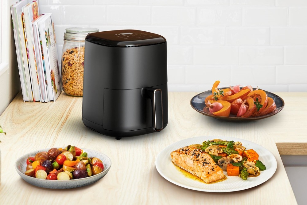 Horkovzdušná fritéza pro přípravu zdravých pokrmů s minimem přidaného tuku, nebo zcela bez tuku.