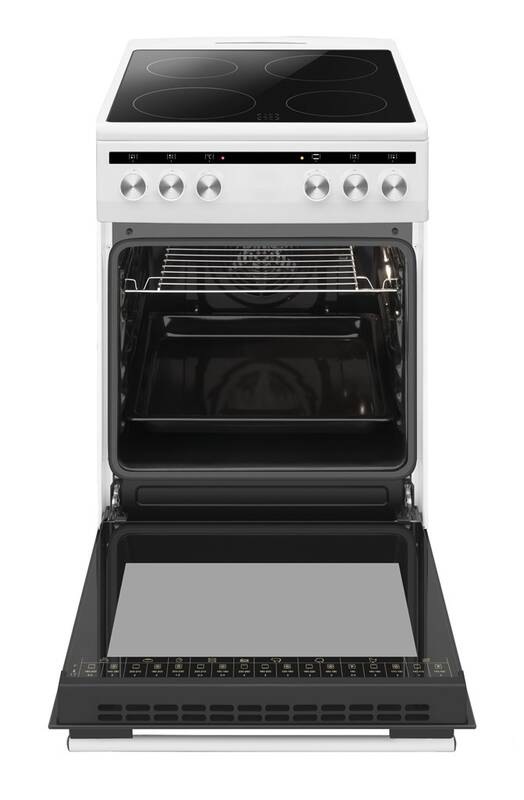 4 varné zóny mají možnost aktivace super rychlého ohřevu a ukazují zbytkové teplo. Skleněná dvířka mají 3 skla pro dokonalé bezpečí. Součástí sporáku je i výklopný odkládací prostor pro uložení roštu a hlubokého plechu.