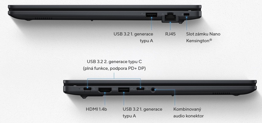 ExpertBook B1 je kancelářský notebook, který vám pomůže pracovat efektivně a pohodlně na každém kroku. Zařízení na první pohled upoutá tenkým designem a nízkou hmotností, takže ho stačí vložit do tašky nebo batohu a můžete vyrazit, kam potřebujete. Velký 15,6" displej s Full HD rozlišením vám poskytne dostatečný přehled o všech spuštěných aplikacích a prostorná klávesnice s dotykovým touchpadem usnadní psaní všemi deseti. Uvnitř se schovává kvalitní hardwarová výbava včetně procesoru Intel Core i5-13420H a 16GB operační paměti, která zajišťuje rychlé spouštění aplikací a jejich bezproblémový chod. Na bočních stranách najdete konektory pro připojení externích zařízení, mezi nimiž nechybí HDMI, USB-C nebo USB.