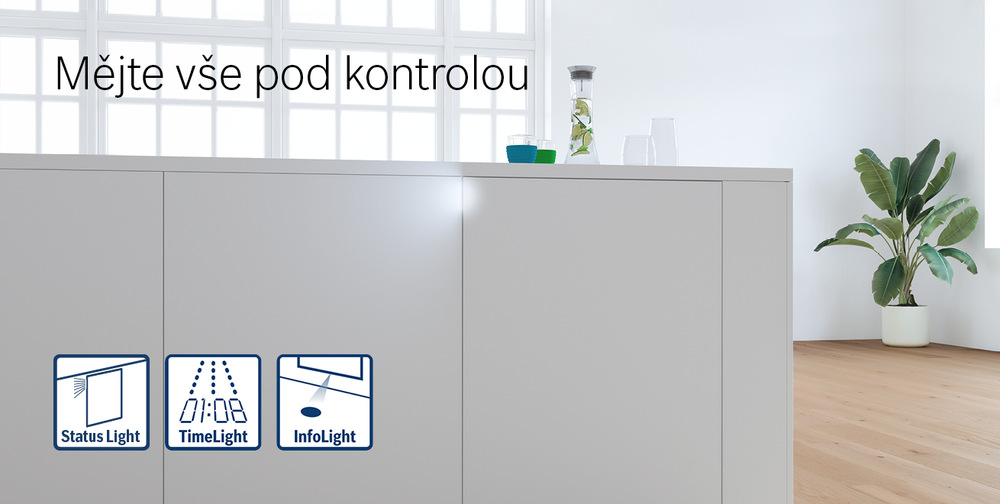 U myčky, která nemá přední panel, je těžké na první pohled zjistit, zda ještě myje. Díky světelné signalizaci vás myčka Bosch SBH4HVX00E sama upozorní, kdy už mycí proces skončil nebo jestli stále ještě probíhá.