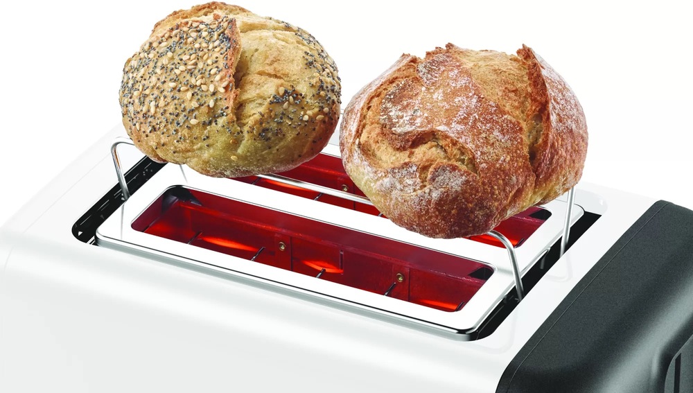 Skvělý pomocník pro křupavé pečivo jako z pekárny. Díky držáku na housky můžete mít lahodnou snídani snadno a rychle. Opékat můžete i malé kousky, s funkcí HighLift vám vyskočí sami skoro až na talířek. Topinkovač umí také pečivo rychle ohřát nebo rozmrazit.