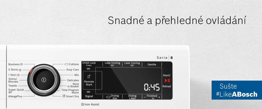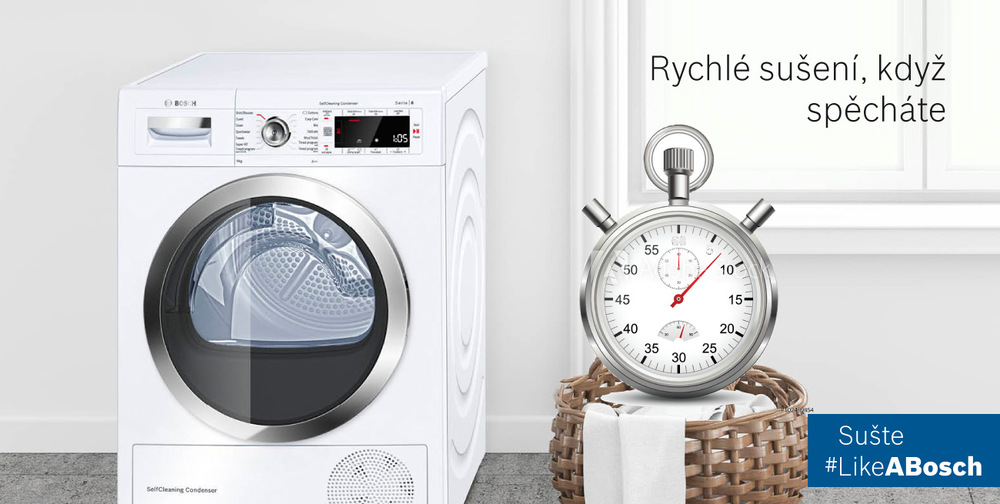 Rychle, rychle, spěchám! Pro sušičku Bosch to není žádný problém. 40minutový program pro rychlé sušení je vhodný pro menší množství prádla ze syntetického materiálu a tenkých tkanin. Přesný systém kontroly pohlídá teplotu a sleduje stupeň vlhkosti oblečení v reálném čase. Své oblíbené kousky si tak můžete obléknout ihned po vytažení ze sušičky.