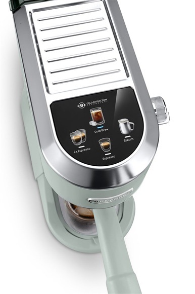V horní části kávovaru najdete nové uživatelské rozhraní s barevnými dotykovými ikonami. Užijte si atraktivní štíhlý design v celokovovém provedení. Panel nabízí přípravu pro 1× espresso, 2× espresso a Cold Brew.