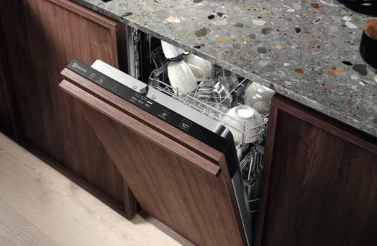 Tento vestavný model myčky Electrolux našel šikovnou cestu, jak vás neustále informovat o průběhu mycího cyklu, a to prostřednictvím promítání červeného světelného paprsku na podlahu. Až bude nádobí připravené k vyndání, změní se barva na zelenou.