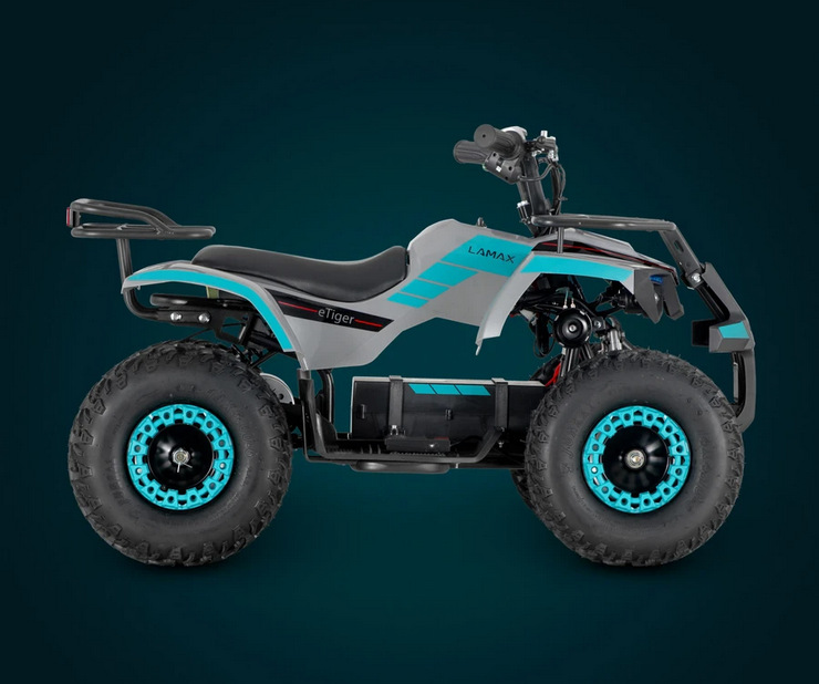 LAMAX eTiger ATV50S je stabilní, pohodlný a bezpečný díky skvělým brzdám, tlumičům, pevnému rámu, pohodlnému sedlu a velkým kolům.