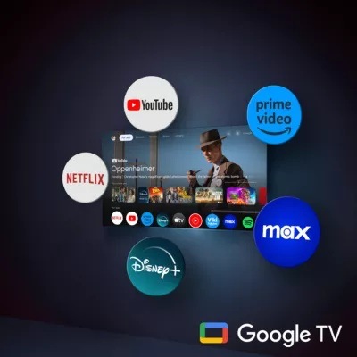Ponořte se do světa online obsahu, který nabízí nekonečné možnosti zábavy. Připojte svůj televizor k domácí síti přes Wi-Fi nebo pomocí ethernetového kabelu, stáhněte si oblíbené streamovací služby a další aplikace a vyberte si, co aktuálně chcete sledovat. Operační systém Google TV vám zajistí přehledné prostředí, poskytne bohatou nabídku aplikací a umožní mít ty nejpoužívanější vždy po ruce pro snadný a rychlý přístup.