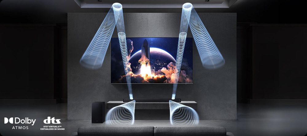 Nechejte se unášet na vlnách prostorového zvuku s podporou formátů Dolby Atmos, Dolby Digital Plus, Dolby True HD, DTS TruSurround HD, DTS Virtual:X a Surround, které se spolehlivě postarají o skvělý prostorový zážitek při sledování filmů, seriálů nebo hraní vašich oblíbených her. Navíc díky režimu Bass Boost zvýšíte spodní frekvence pro příjemnější poslech s pořádně dunivým podtextem.