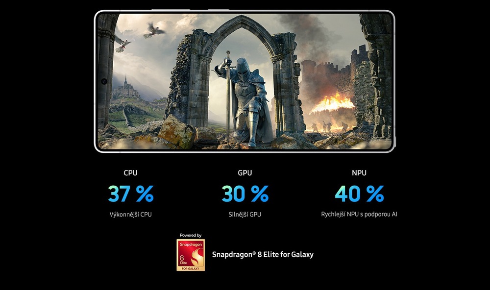 Telefon přináší prvotřídní výkon pro nejnáročnější nasazení, jak dokazuje Qualcomm Snapdragon 8 Elite for Galaxy. Má totiž o 30 % lepší GPU, stejně jako ještě výkonnější umělou inteligenci.