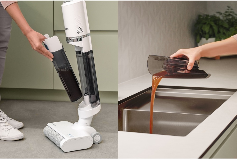 Podlahový čistič je vybaven dvěma nádržkami – na čistou vodu (500 ml) a špinavou vodu (400 ml). Díky tomuto systému nečistoty nekončí zpět na podlaze, ale jsou odsávány přímo do samostatné nádoby. Průběžné namáčení kartáče zajišťuje, že při úklidu vždy používáte čistou vodu, což zabraňuje vzniku šmouh a skvrn.