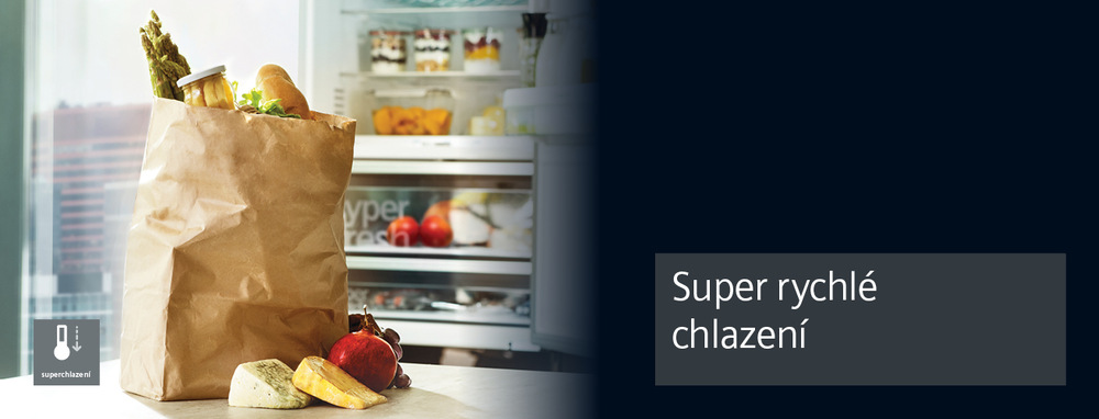 Aktivací funkce superChlazení klesne teplota v chladničce rychle na +2 °C, když do ní vložíte čerstvé teplejší potraviny. Tak se zabrání nechtěnému úniku chladu již dobře vychlazených potravin. Nejpozději po 6 hodinách se superChlazení automaticky vypne. Chladničky Siemens tak rychle chladí čerstvé potraviny a zabraňují ohřívání těch již uložených.