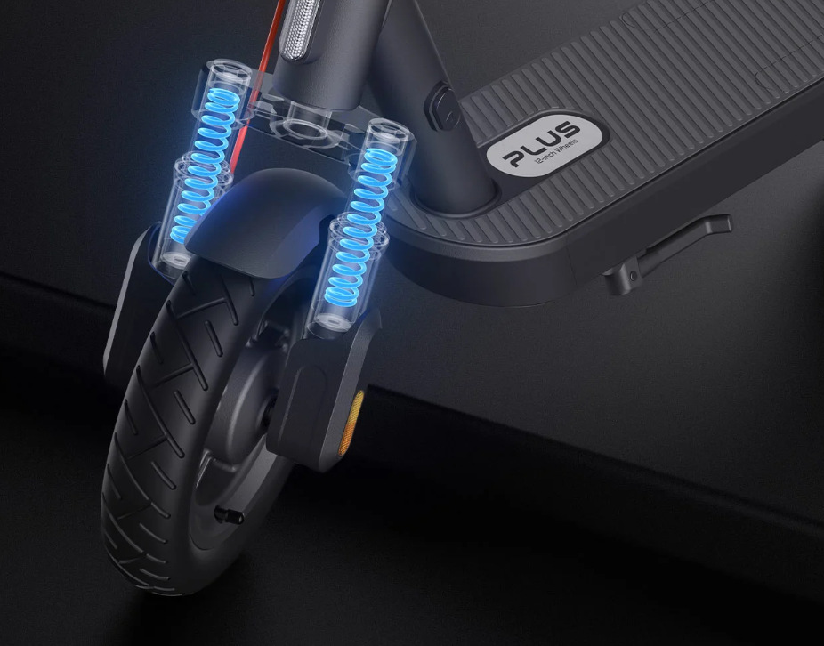 Xiaomi Electric Scooter 5 Plus GL přináší komfortní jízdu díky tlumení s maximálním zdvihem 30 mm – účinně pohlcuje nárazy a vibrace, takže jízda je plynulá i na rozbitých cestách.